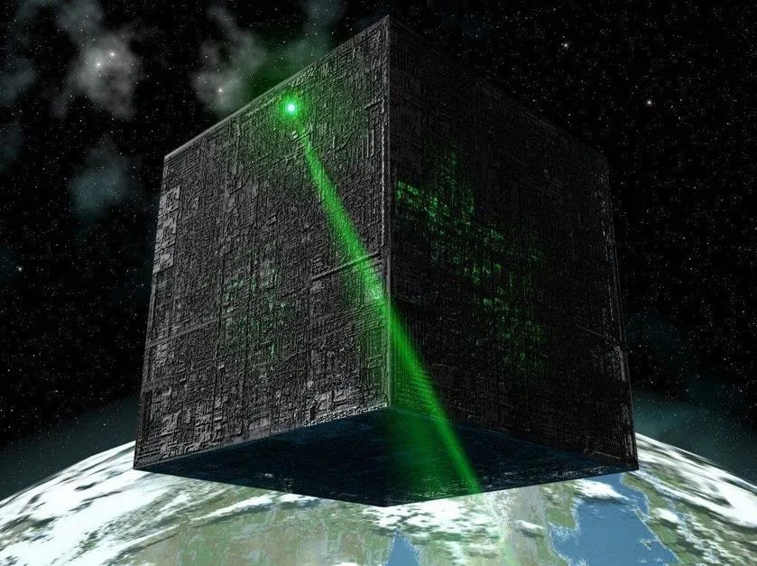 The Borg's sole purpose was to sail around the universe absorbing various "alien life-forms" into its centrally controlled, AI artifice. This concept has been a repeated theme in Hollywood, Jew movies like The Matrix and Terminator.
